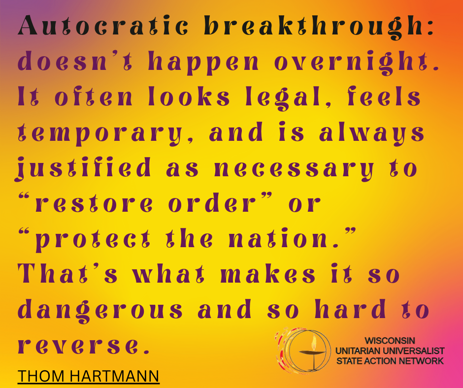WUUSAN thrives because of dedicated volunteers. Consider helping organize events, sharing your congregation’s priorities with our broader community, or serving as WUUSAN’s liaison within your congregation. Every contribution—no matter how small—strengthens our network and impact. Interested in volunteering? Contact Rev. Mark at rev.mark@wuusan.org to learn more about supporting UU values across Wisconsin.