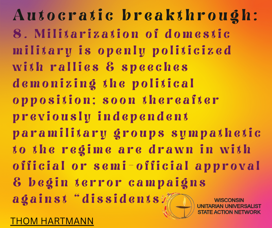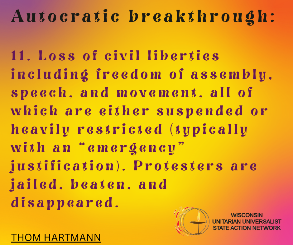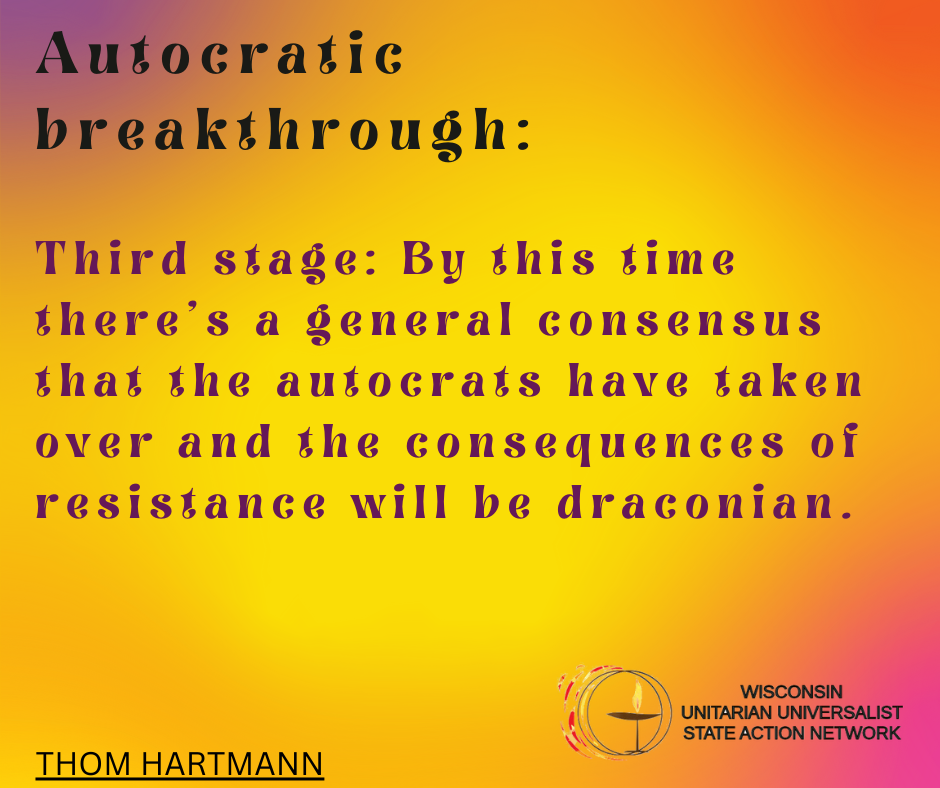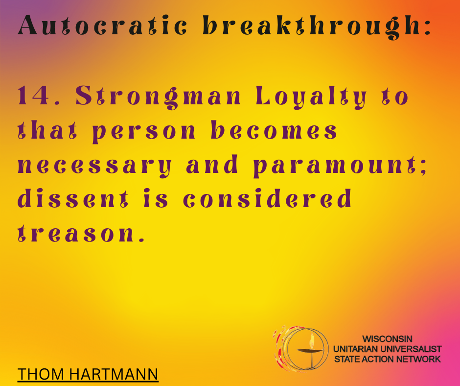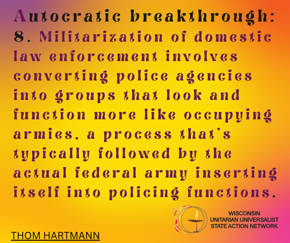 We envision Unitarian Universalist congregations in Wisconsin in a collaborative relationship, sharing hopes and ambitions, embracing UU values, and working together to bring about the Beloved Community in the state of Wisconsin.