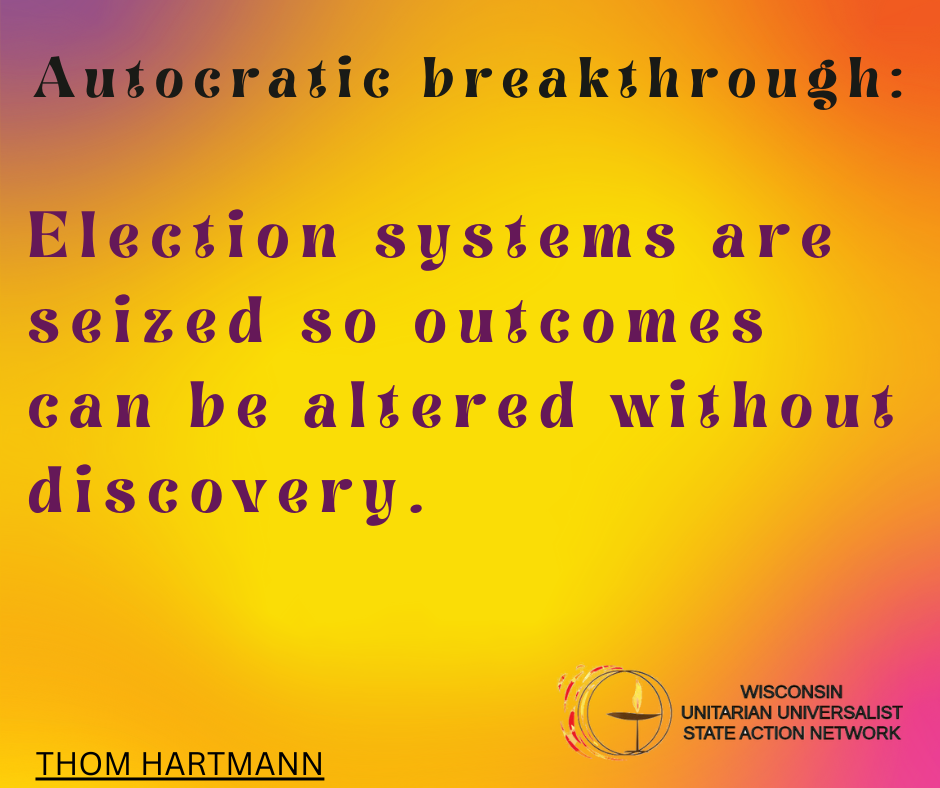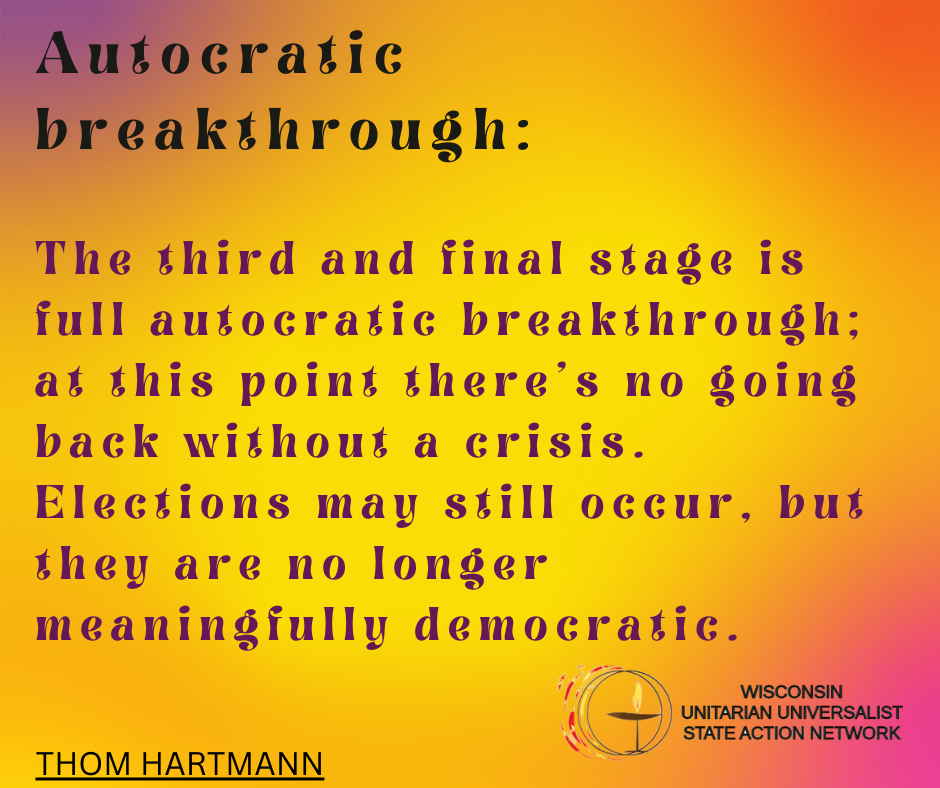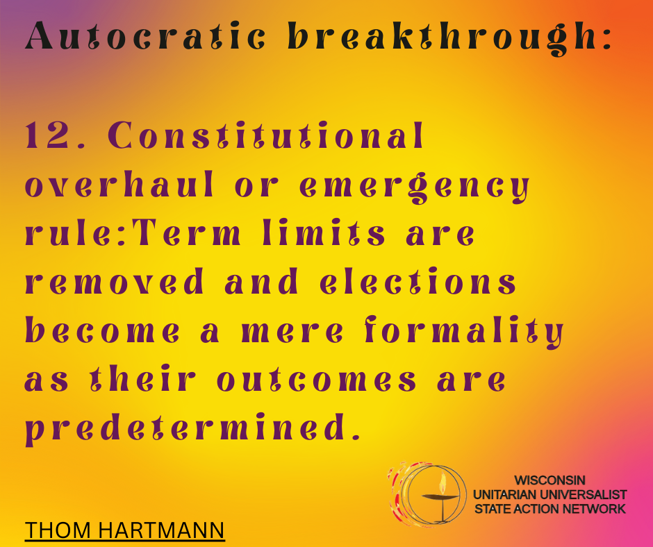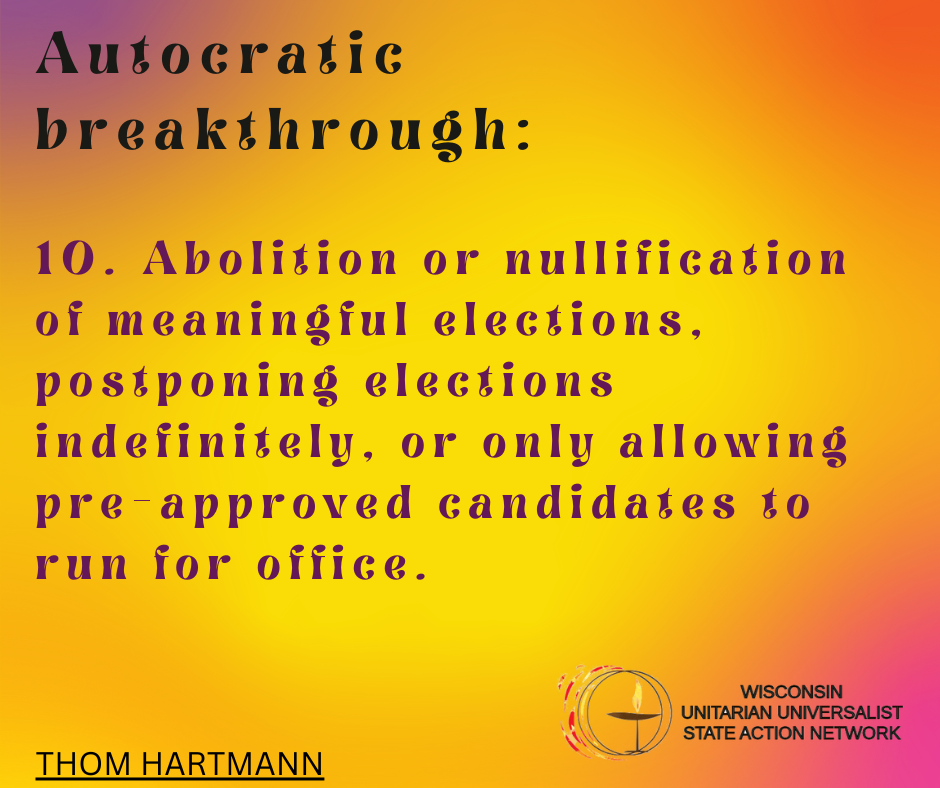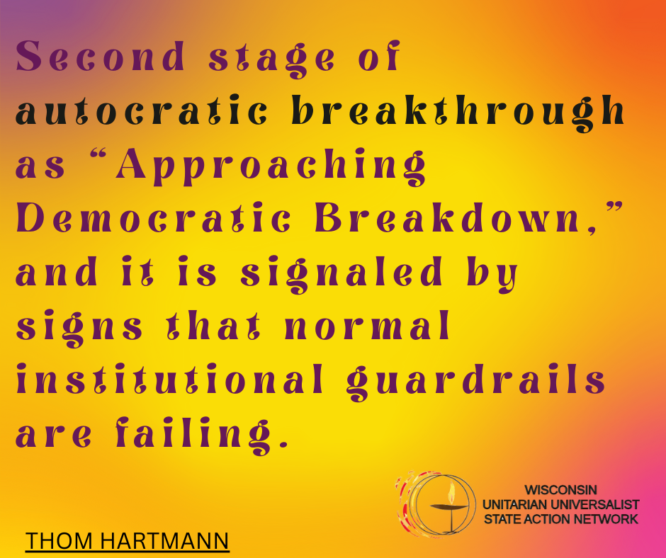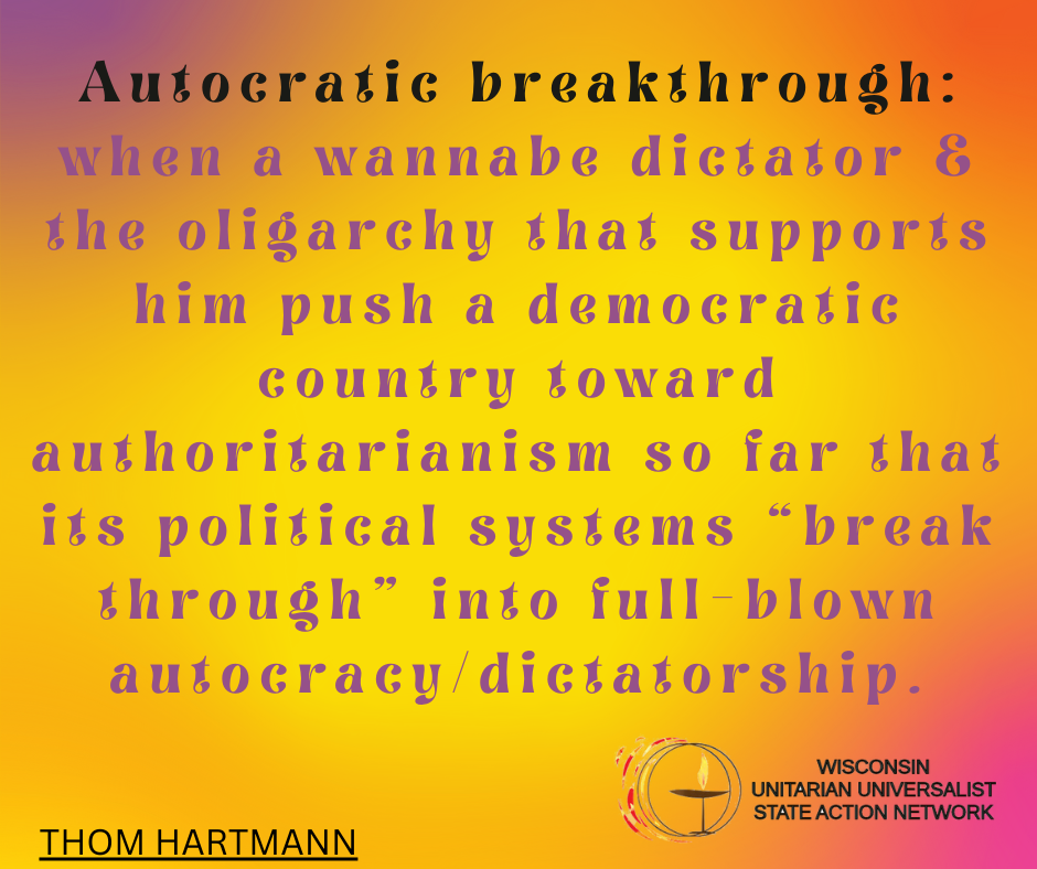 We envision Unitarian Universalist congregations in Wisconsin in a collaborative relationship, sharing hopes and ambitions, embracing UU values, and working together to bring about the Beloved Community in the state of Wisconsin.